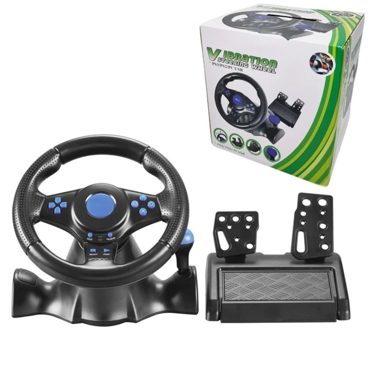 Завдяки прогумованому покриттю рульового колеса Vibration Steering Wheel не ковзає в руках, забезпечуючи повний контроль над віртуальним автомобілем. Міцний затискач кріплення дозволяє легко та надійно закріплювати кермо на столі. Кермо оснащено 2 педалями, 13 кнопками, завдяки чому ви отримуєте повний контроль над грою. При підключенні до PS3 кнопки стають чутливими до натискання, забезпечуючи більший контроль над керуванням. Розширені можливості управління у поєднанні з технологією вібровіддачі роблять це кермо найкращим вибором для всіх любителів гоночних ігор.